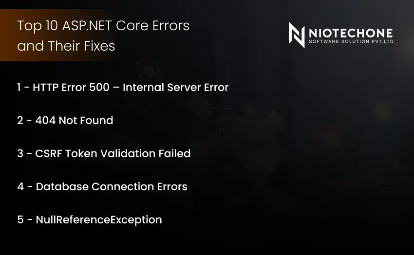 Whether you’re working with an ASP.NET Development company or planning to hire .NET developers must understand how to correct common errors. We will discuss the 10 most common ASP.NET Core errors in this blog, describe them in a nutshell, and demonstrate to you easy solutions to ensure your applications are reliable.
